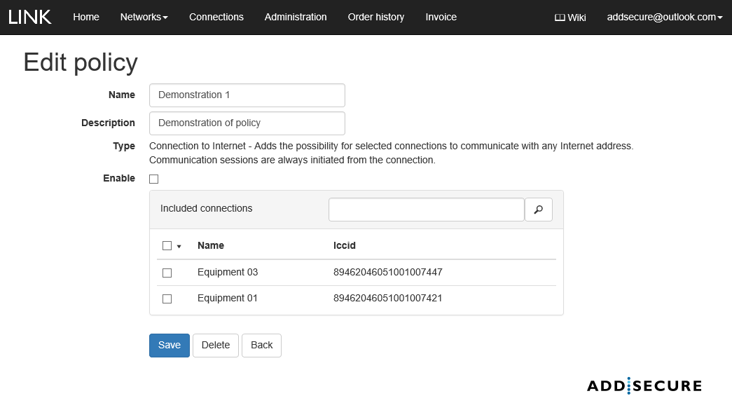Note that the same Link Connection can be included in several Connection to Internet policies. Note also that the connections defined in this policy is going to override its definition in Connection to public network.