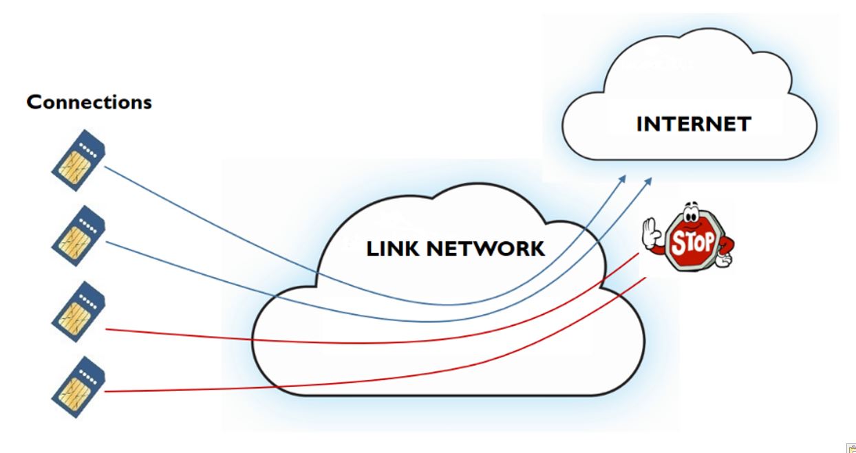 Connection to Internet has the same functionality as “Internet out” but allows only selected Connections in a Link Network to open sessions to Internet servers.