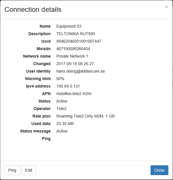 - The equipment can handle and respond to ping messages.