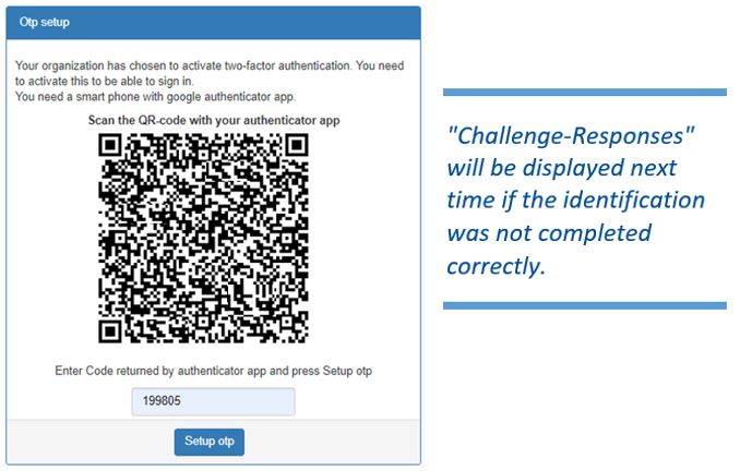 - A Challenge-Response screen with QR code appears on the screen